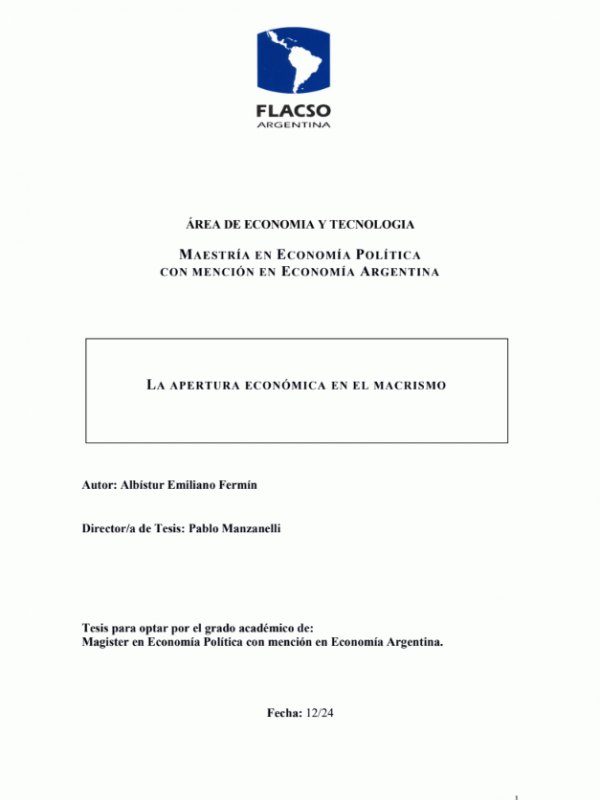 La apertura económica en el macrismo / Emiliano Fermín Albístur [Recurso electrónico]