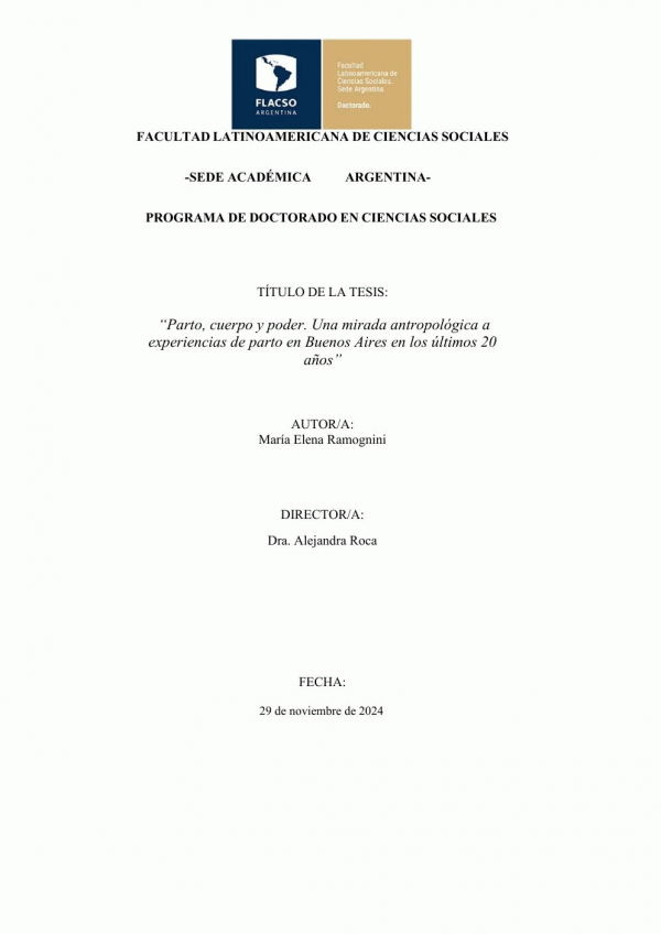 Parto, cuerpo y poder. Una mirada antropológica a experiencias de parto en Buenos Aires en los últimos 20 años / María Elena Ramognini [Recurso electrónico]