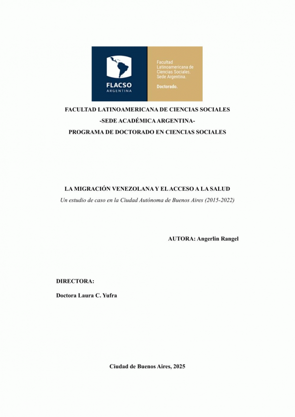 La migración venezolana y el acceso a la salud : un estudio de caso en la Ciudad Autónoma de Buenos Aires ( 2015 - 2022 ) / Angerlin Rangel [Recurso electrónico]