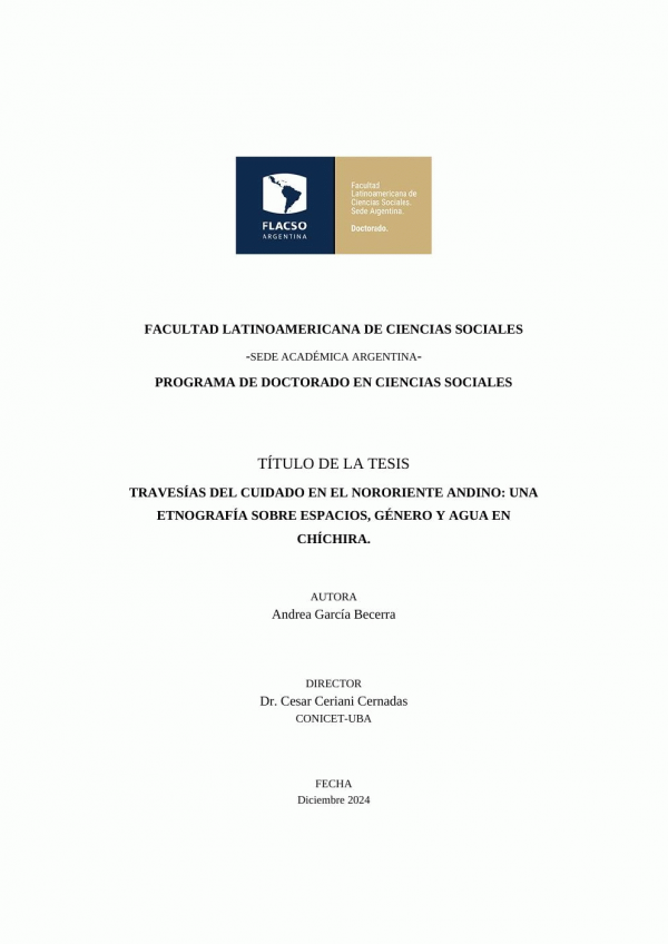 Travesías del cuidado en el nororiente andino : una etnografía sobre espacios, género y agua en Chíchira / Andrea García Becerra [Recurso electrónico]