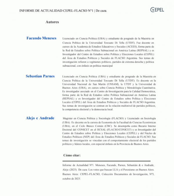 De caza : los votos que buscan LLA y el Peronismo en Buenos Aires [Separata] / Alejo Gastón e Andrade, Facundo Meneses, Sebastián Parnes [Recurso electrónico]