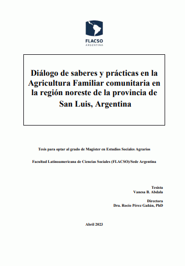 Diálogo de saberes y prácticas en la agricultura familiar comunitaria en la región noreste de la provincia de San Luis, Argentina / Vanesa B. Abdala [Recurso electrónico]