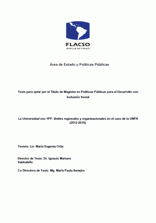 La universidad con YPF : límites regionales y organizacionales en el caso de la UNPA ( 2012 - 2019 ) / Lic. María Eugenia Ortiz [Recurso electrónico]