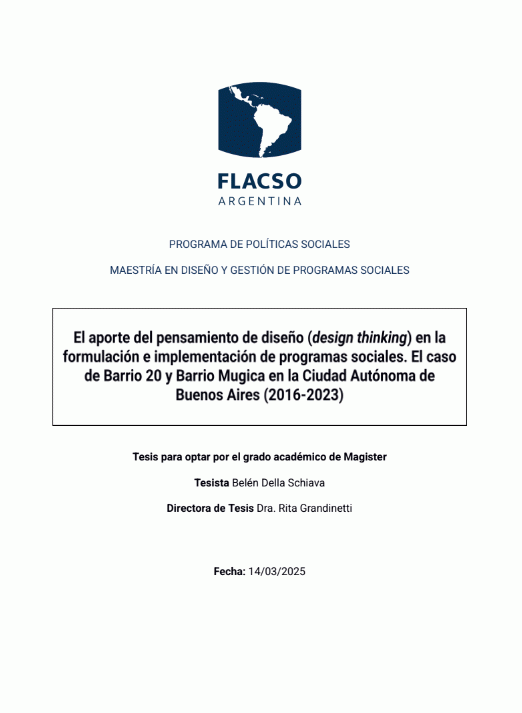 El aporte del pensamiento de diseño ( design thinking ) en la formulación e implementación de las políticas sociales. El caso de Barrio 20 y Barrio Mugica en la Ciudad Autónoma de Buenos Aires ( 2016 - 2023 ) / Belén Della Schiava [Recurso electrónico]