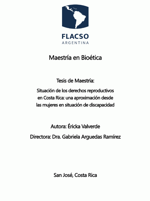 Situación de los derechos reproductivos en Costa Rica : una aproximación desde las mujeres en situación de discapacidad / Éricka Valverde [Recurso electrónico]